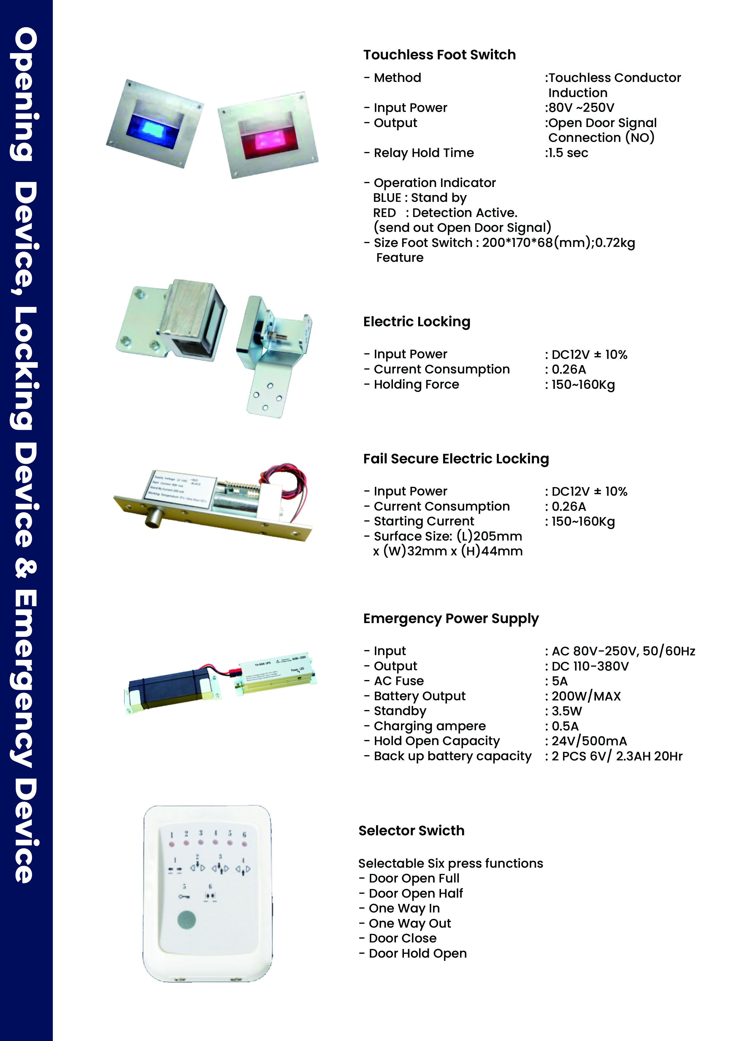 Opening, Locking & Emergency Device